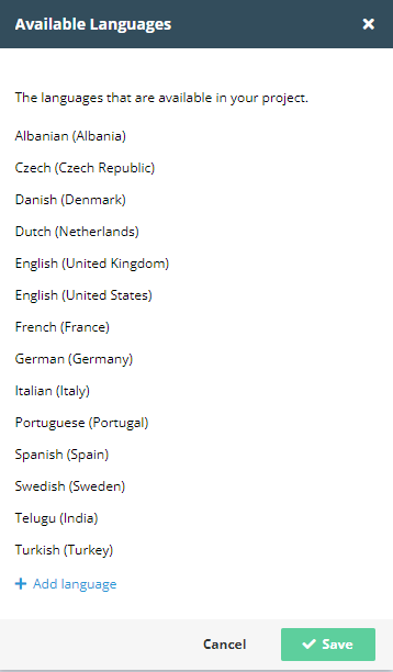 Here you can add and manage languages to be available in your project.